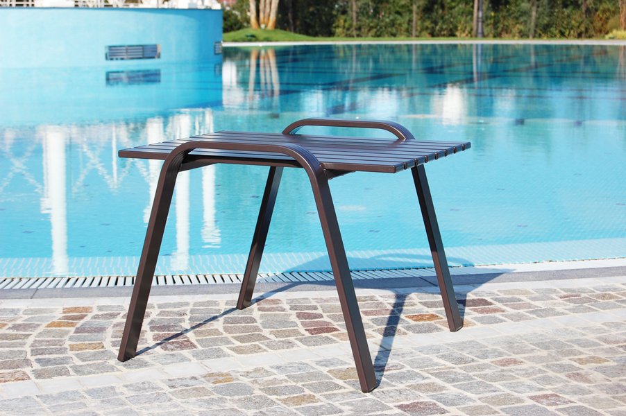 Comodo e resistente tavolino impilabile, da abbinare ai lettini e alle poltrone della linea PURA, per completare la funzionalità di ogni articolo e di ogni ambiente.